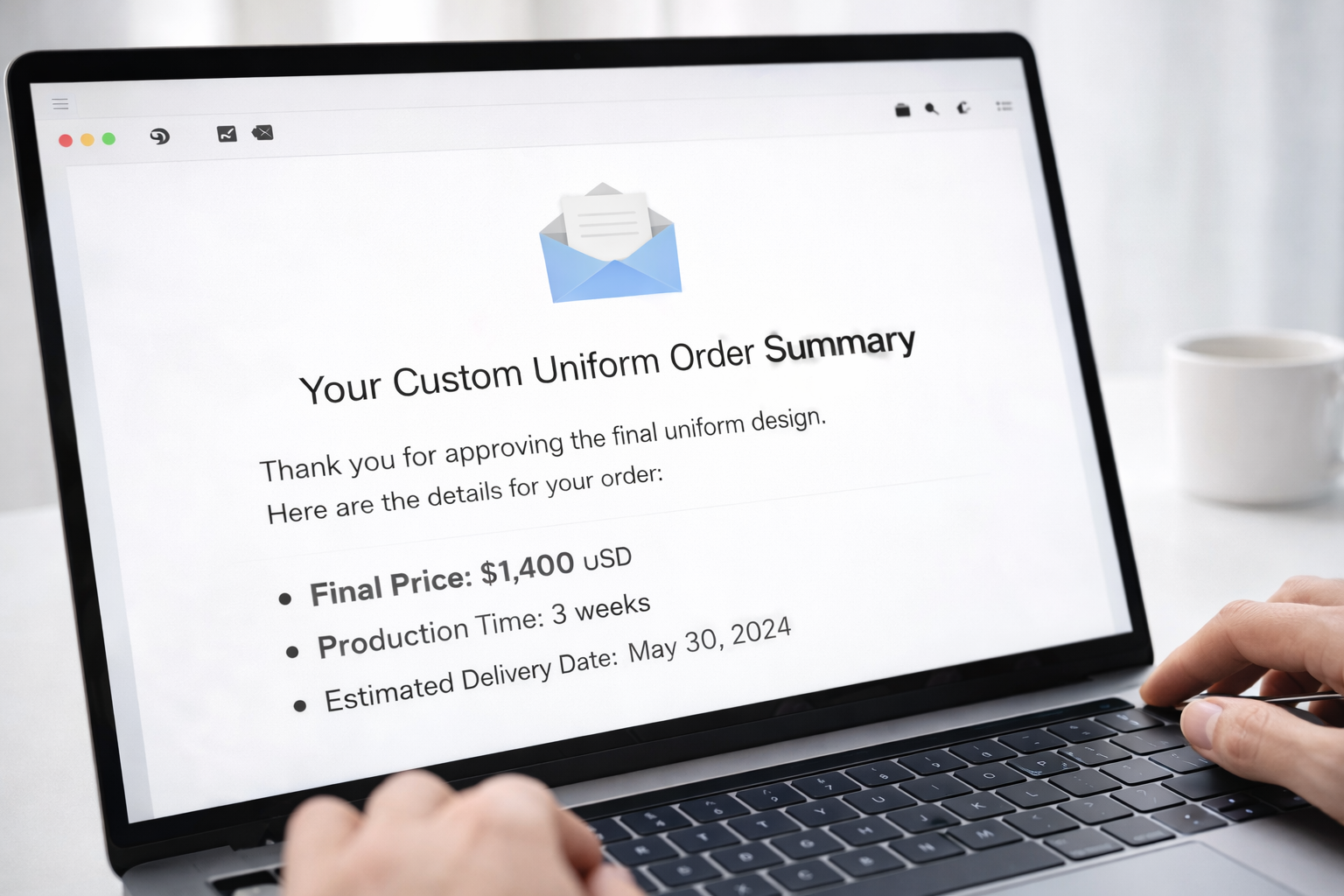 If the price and timeline work for you, we start production immediately and ship your custom uniforms to your address.