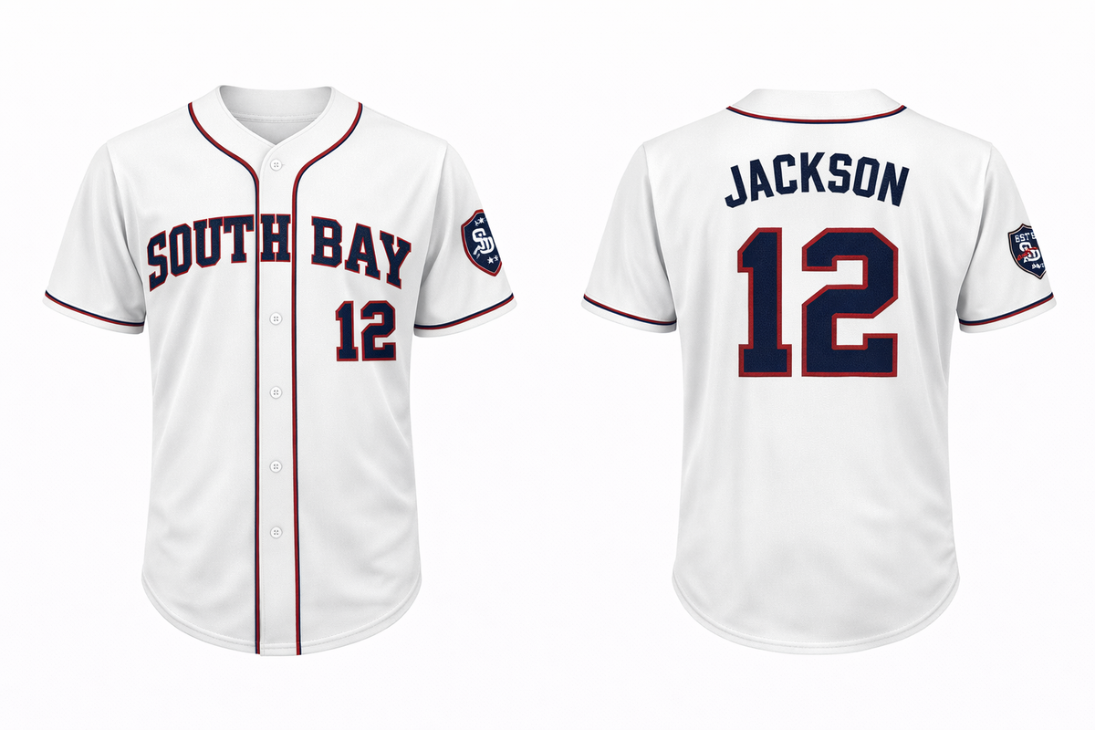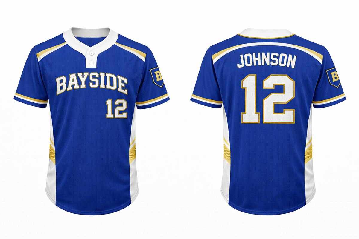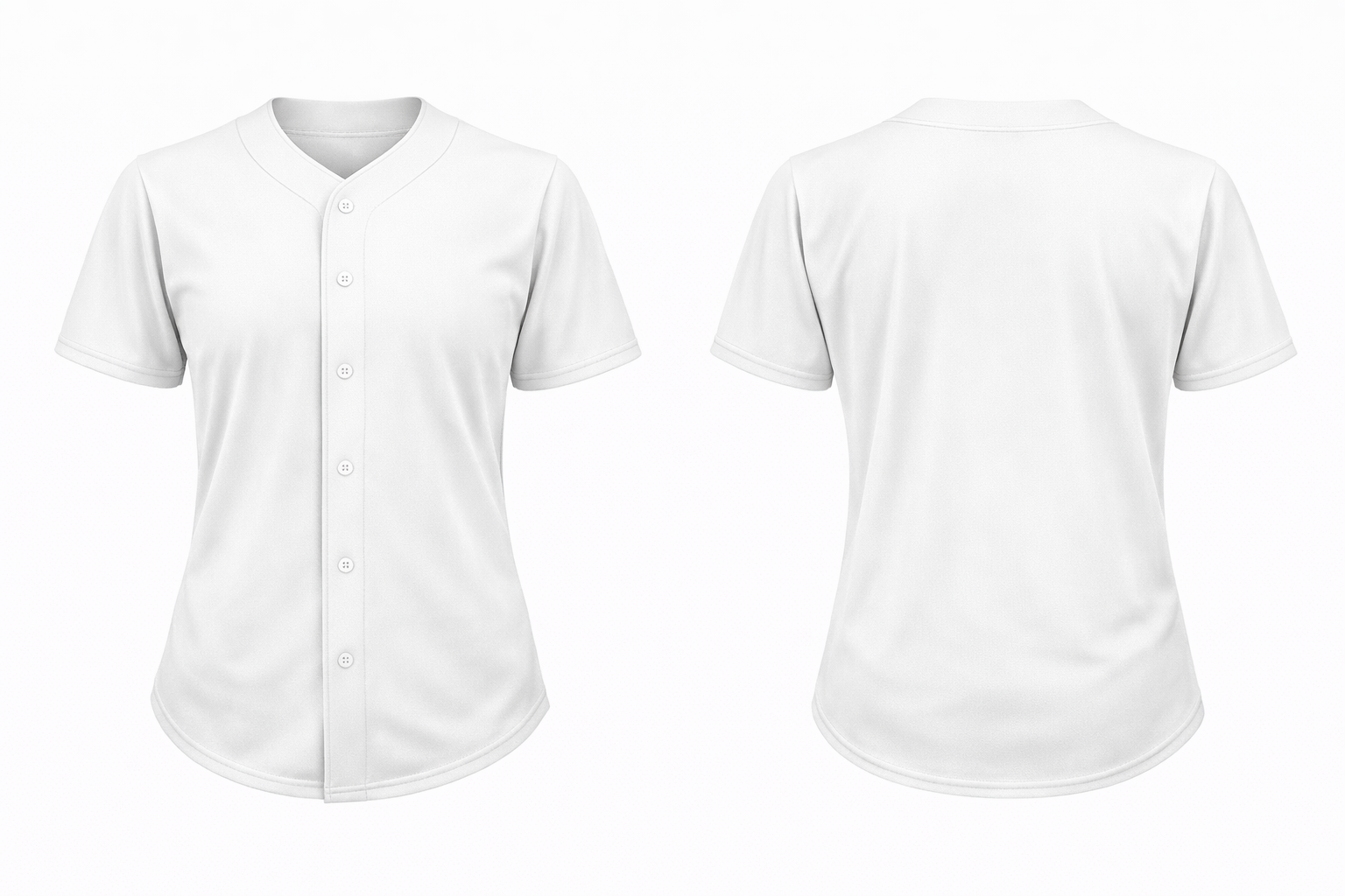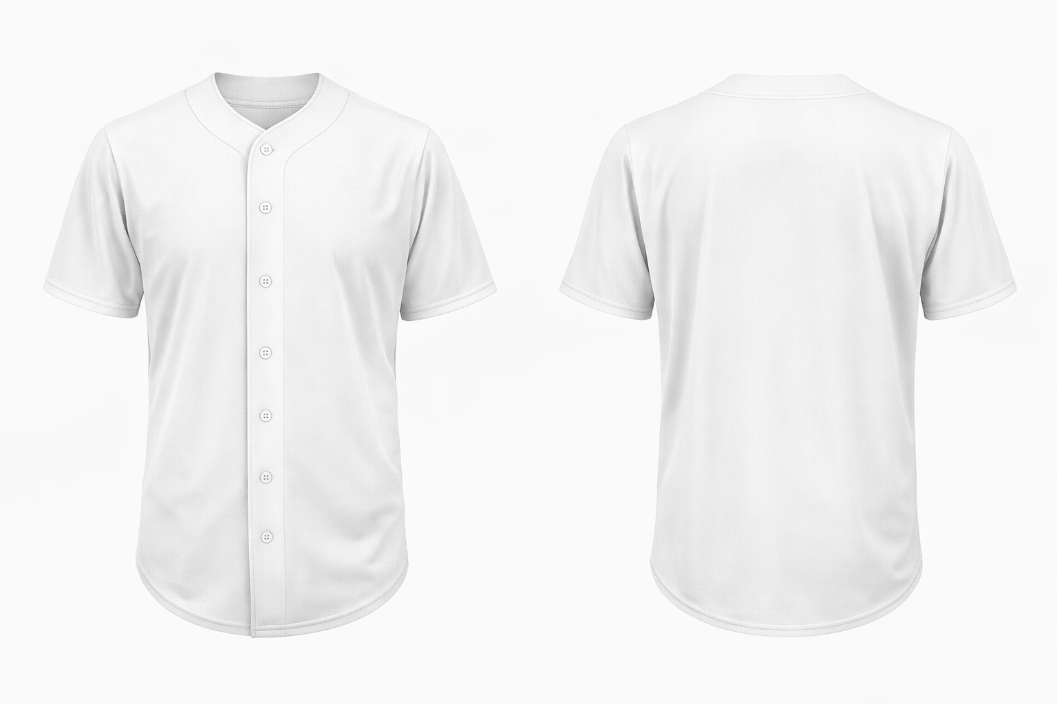 A classic full-button baseball jersey with a clean, unbranded front and back—perfect for full customization with your team name, numbers, and logos.