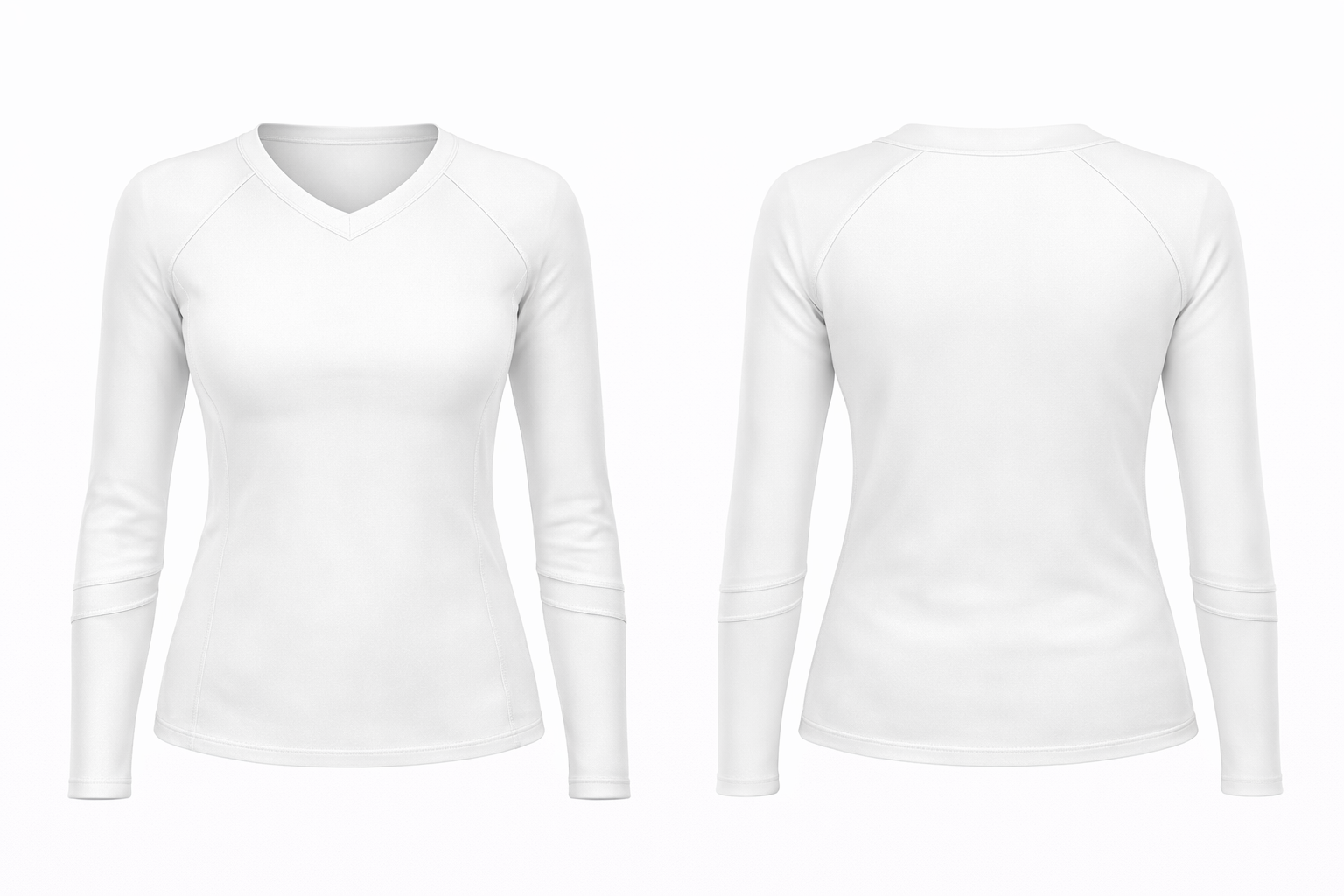 A long-sleeve cheer shell pattern with a clean V-neck and performance fit, designed for competition and high-energy routines. Front and back views included, with smooth panels that make it easy to add custom colors, logos, and lettering.