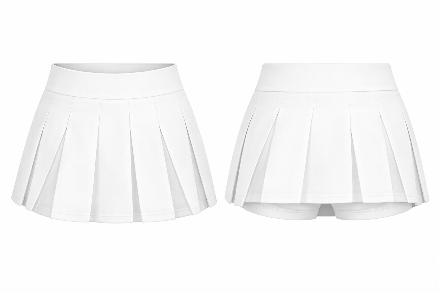 A classic cheer skirt pattern available in straight, A-line, or pleated styles. Designed for performance, this competition-ready option includes built-in briefs for secure coverage. Front and back views included—ideal for custom colors, logos, and trim.